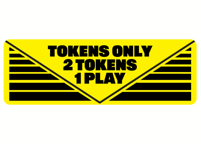 This decal sticker works great for arcade games, casino style games, pinball machines, quarter pushers, and pool tables. 2 Tokens = 1 Play (Two Tokens One Play)